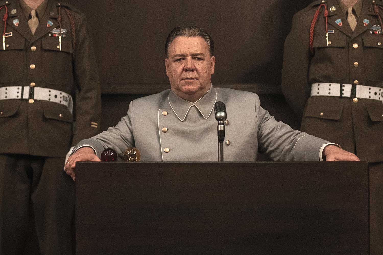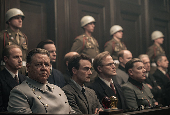 Навряд чи є хоч якийсь сумнів, що від післявоєнних часів і аж до сьогодні найбільш пронизливим, монументальним, драматургічно потужним, психологічно й етично глибоким, дійсно претендуючим на статус «фільму століття» був і лишається «Нюрнберзький процес» режисера Стенлі Крамера (1961), де зіграли Максиміліан Шелл, Берт Ланкастер і Марлен Дітріх (і хоча «Оскар» дістався Шеллу за роль прокурора, від Ланкастера в ролі обвинуваченого неможливо відірвати ані погляд, ані високі хвилі вкрай суперечливих емоцій). Але оскільки картина Крамера розповідала про один із «малих Нюрнберзьких процесів», а саме про суд над нацистськими суддями, порівнювати сьогоднішню прокатну екранізацію режисера і сценариста Джеймса Вандербільта доцільніше з міні-серіалом, де фігурували майже ті самі персонажі: там американського прокурора Роберта Джексона зіграв Болдвін, а у Вандербільта Майкл Шеннон, там рейхсмаршала Германа Герінга зіграв Кокс, а у Вандербільта Рассел Кроу.